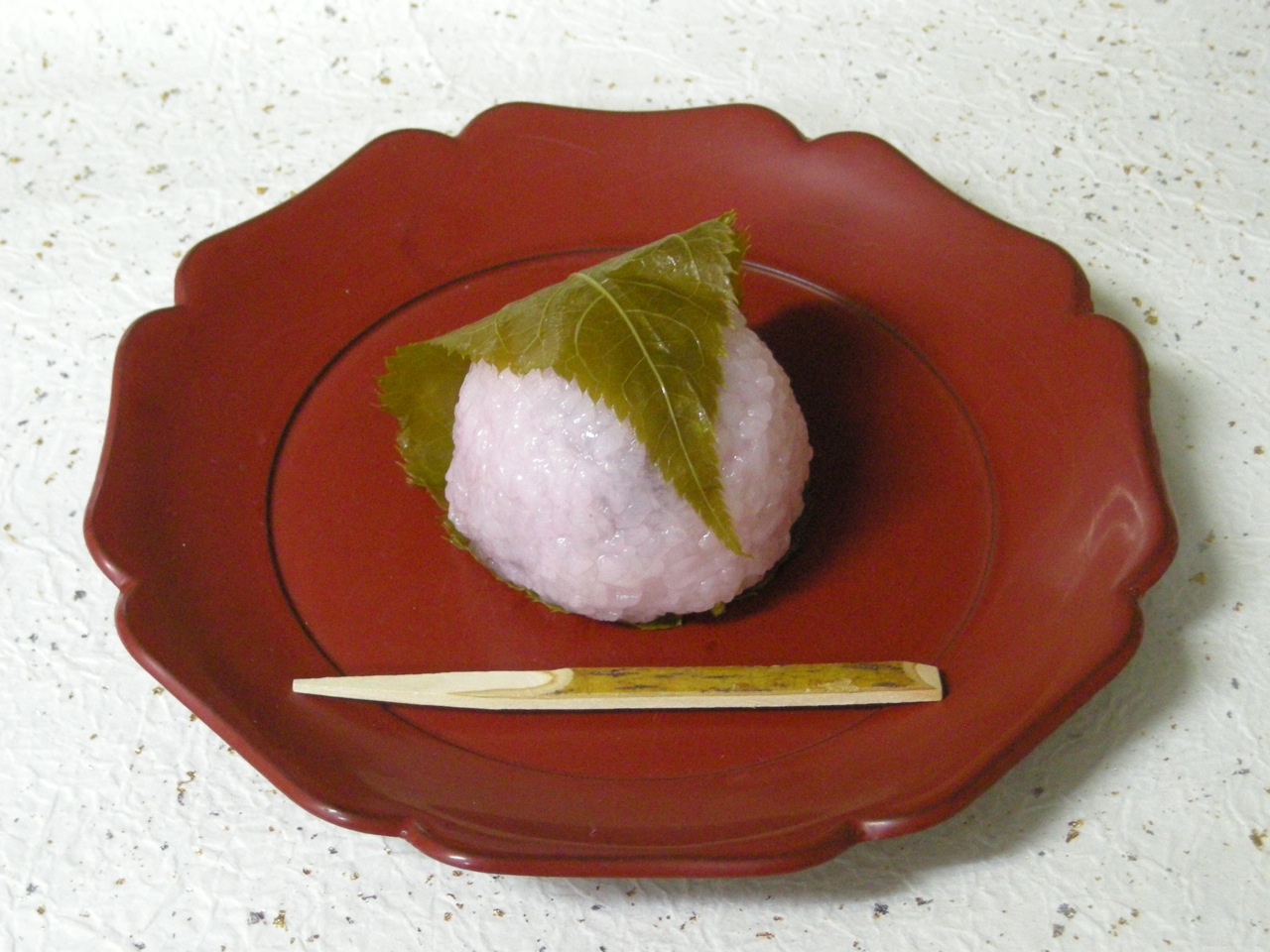 三鈴の桜道明寺は、小豆の香り高いつぶし餡を桜色の道明寺で包み、塩漬けされた桜の葉で巻いた春の香り漂う逸品。