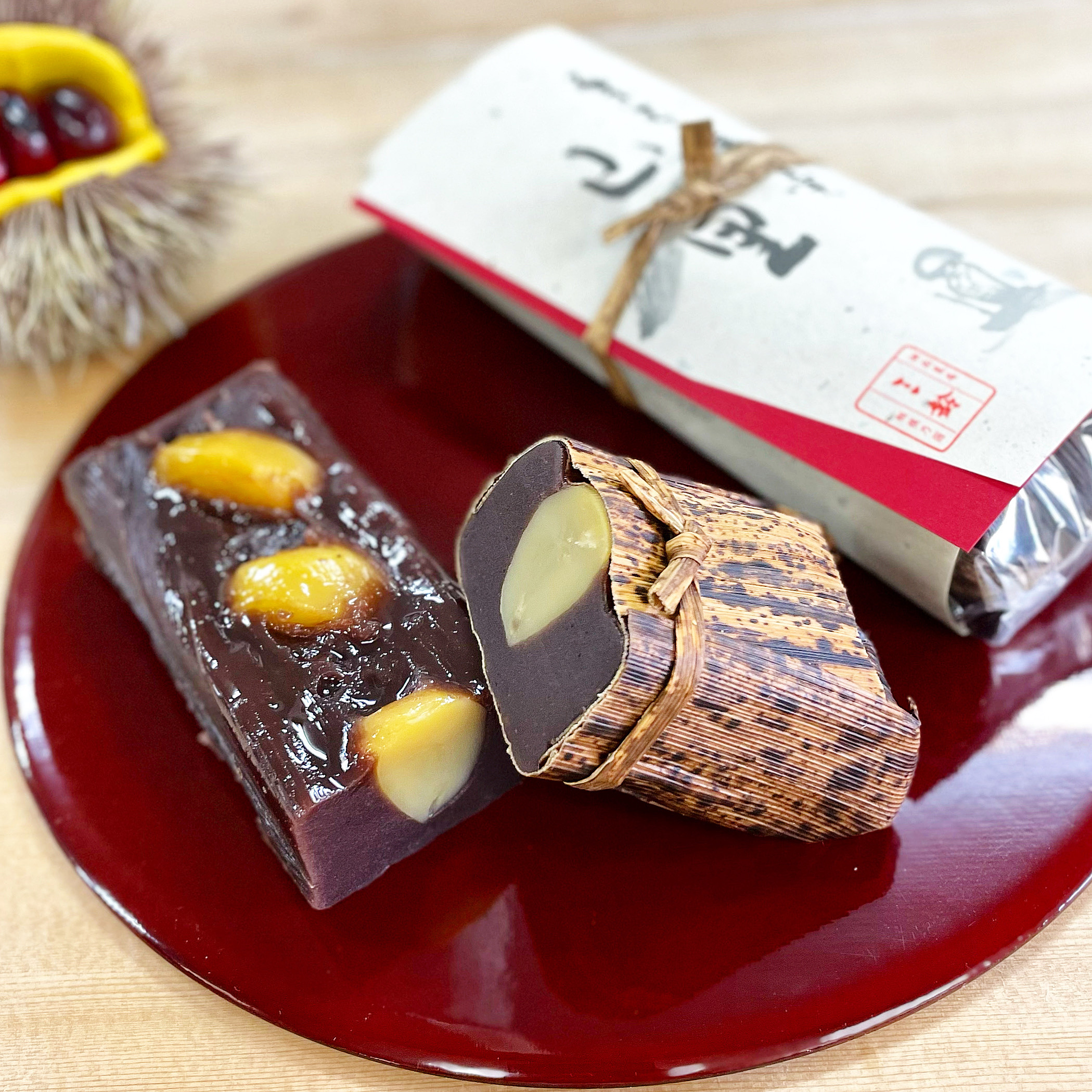 大きな栗が四つ入り、竹皮で巻いて職人が一品一品丁寧に蒸し上げた贅沢な逸品です🌰