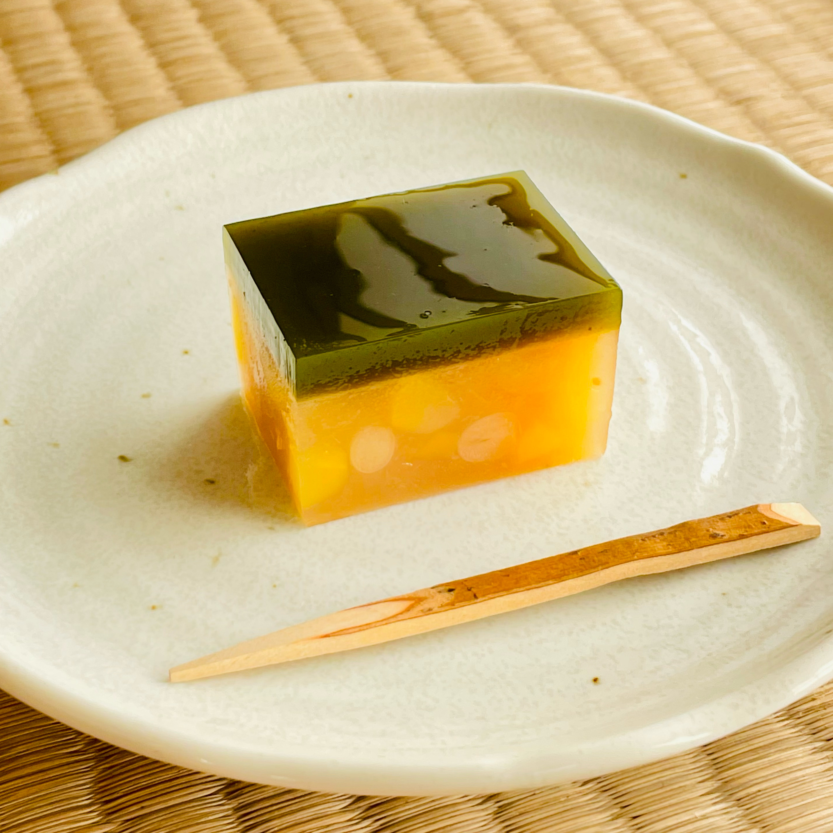 香りの良い抹茶の寒天と三鈴自慢の栗羊羹を合わせた斬新な逸品🍵🌰