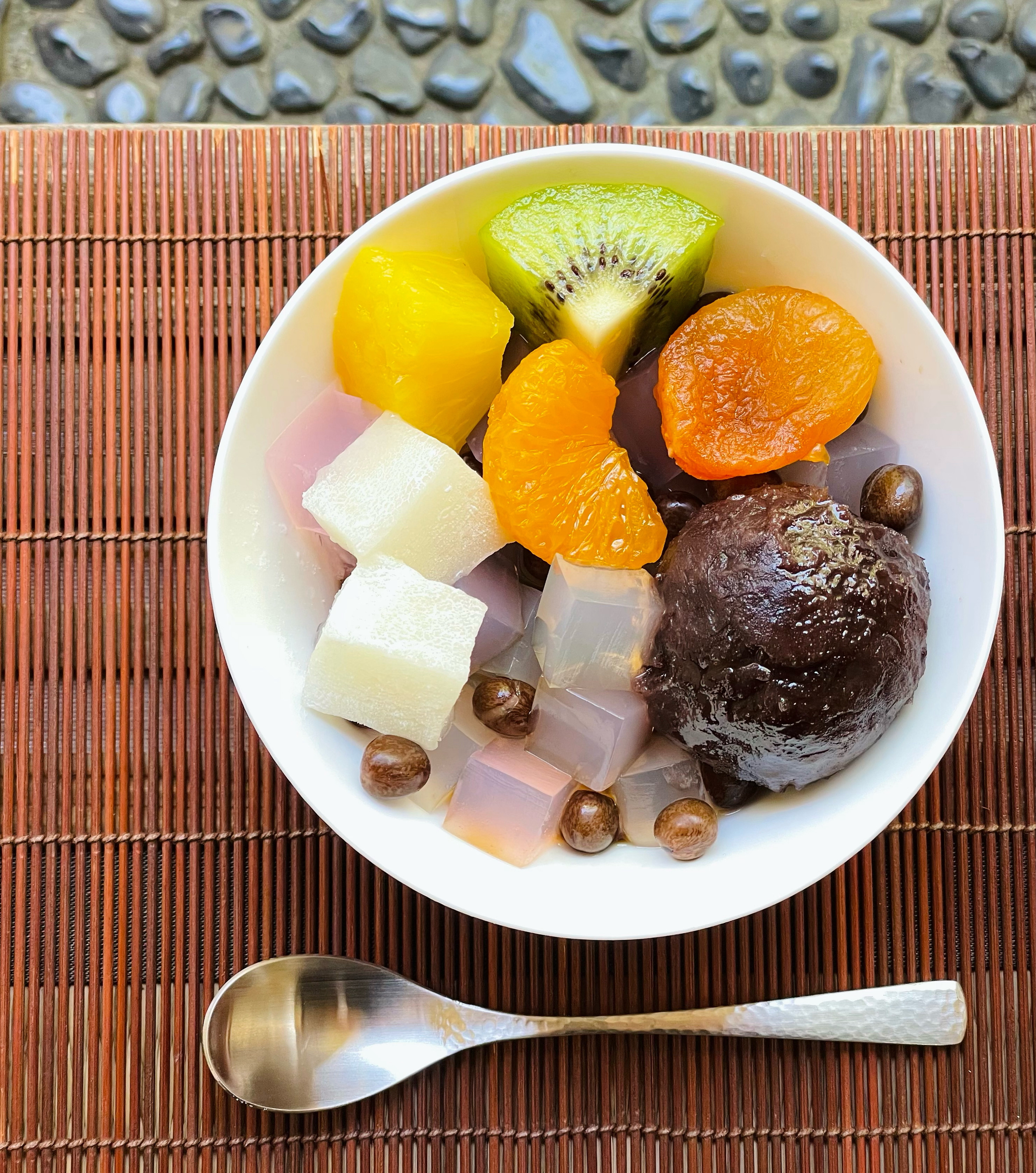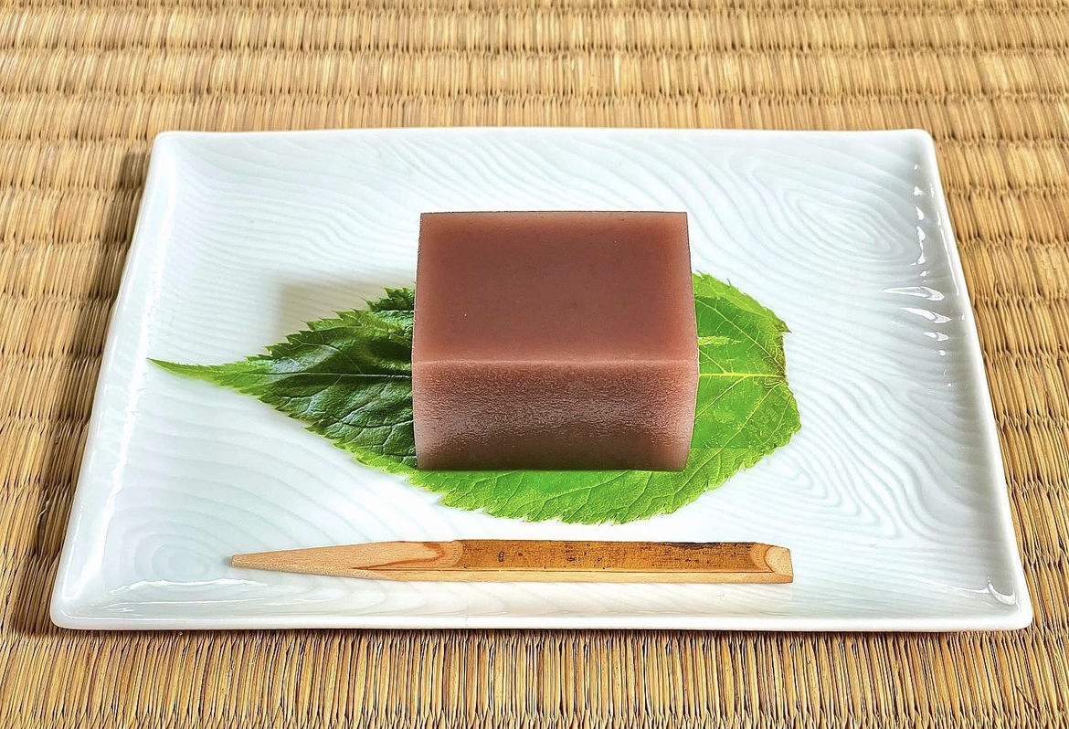 もっちりとしたういろうの上には、蜜煮をした美味しい小豆が散りばめてあります。